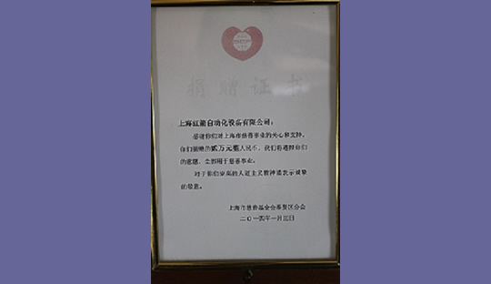 2015年,上海紅箭自動(dòng)化設(shè)備有限公司為上海市慈善基金會(huì)捐款 2015
